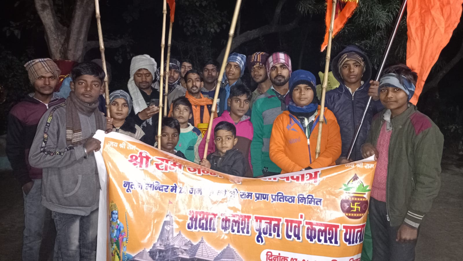 ग्रामीणों ने किया अक्षत कलश का पूजन लगाए जय श्रीराम के नारे