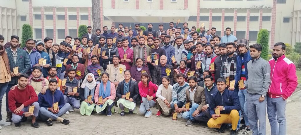 महाविद्यालय के कृषि संकाय के समन्वयक डॉक्टर चंद्रशेखर कुमार ने विद्यार्थियों को विभिन्न उपाधियों से सम्मानित किया ।साथ ही उन्हें उपहार स्वरूप स्मृति चिन्ह प्रदान किए गए ।इस अवसर पर महाविद्यालय के प्राचार्य प्रोफेसर (डॉ) हरिकेश सिंह ने विद्यार्थियों को शुभकामनाएं देते हुए कहा कि निरंतर प्रयास, कठिन परिश्रम और अनुशासन से ही सफलता प्राप्त की जा सकती है । उन्होंने छात्र-छात्राओं को आने वाली परीक्षाओं में धैर्य लगन और मेहनत के साथ सर्वोत्तम प्रदर्शन करने के लिए प्रेरित किया।
