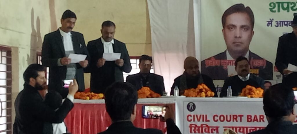 जिसमें जिले के मुख्य न्यायाधीश मजिस्ट्रेट सौरव कुमार वर्मा और उत्तर प्रदेश बार काउंसलिंग के पूर्व अध्यक्ष और वर्तमान सदस्य शिरीष मल्होत्रा ने नवीन कार्यकारिणी को सपथ दिलायी जिसमे प्रवीन सिंह भदौरिया अध्यक्ष तथा वृजेश यादव ने महासचिव पद के साथ पूरी कार्यकारिणी ने सपथ ग्रहण की तथा शपथ ग्रहण समारोह में सभी अधिवक्तागण के साथ बार एसोसिएशन बरेली के अध्यक्ष मनोज हरित , सचिव बीपी ध्यानी ,उप जिलाअधिकारी फरीदपुर निधि डोडवाल ,तहसीलदार दुष्यंत प्रताप सिंह , नायब तहसीलदार अभिषेक तिवारी ,दिव्यांशी सिंह आदि अधिकारी मौजूद रहे।